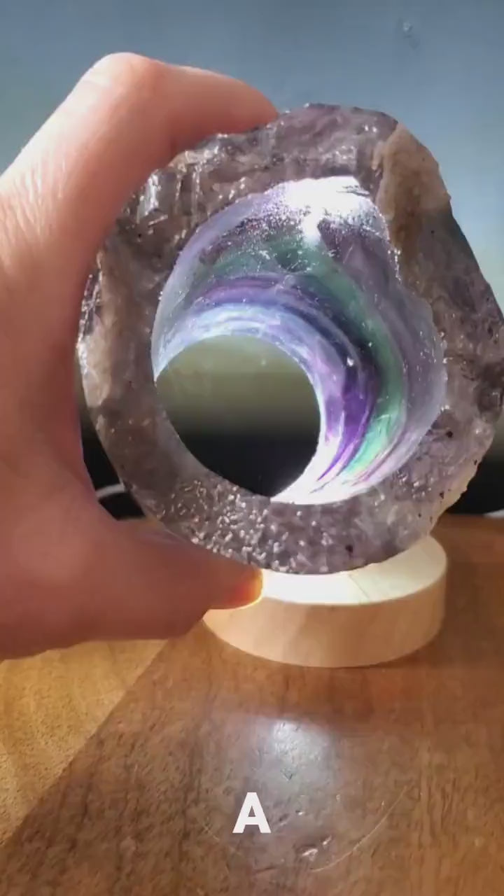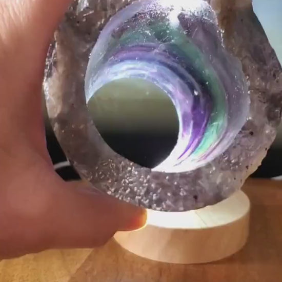 Vakre Fluoritt Regnbue Cylinderlamper i råkrystall, AA Kvalitet, polert ca. 7 x 7cm og remote control, small size