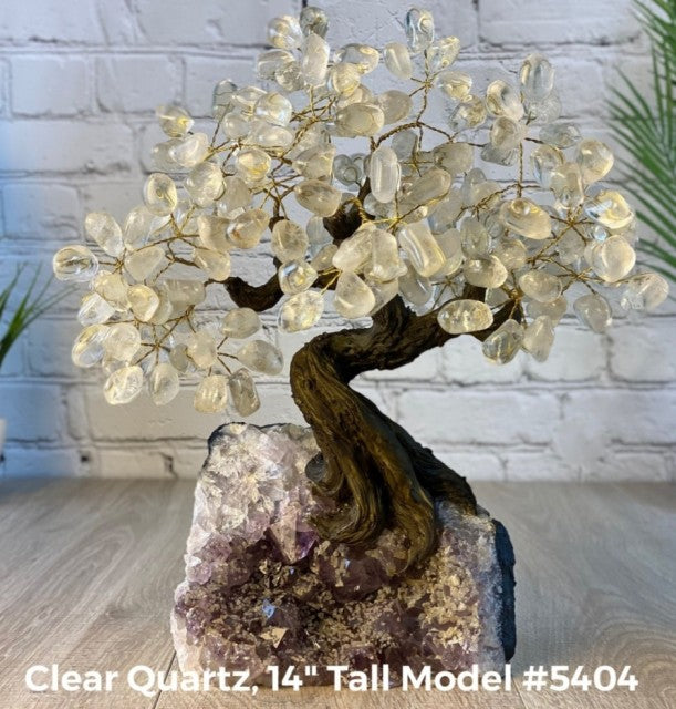 Vakre og eksklusive Feng Shui - Bonsai Clear Quartz Lykketrær m/ ekte krystaller og Ametyst Clusterfot, ca. 35cm høy, 6 kg, 180 krystaller