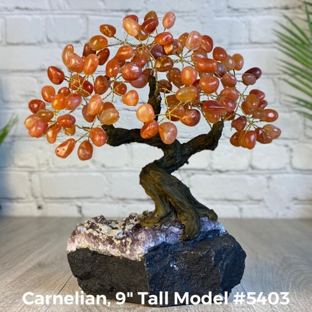 Vakre og eksklusive Feng Shui - Bonsai Lykketrær m/ ekte krystaller og Ametyst Clusterfot, ca. 22cm høy, Karneol, 2.5kg