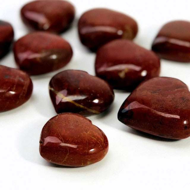 Vakre og store Rød Jaspis Hjertestener i en dyp rød farge, 50x65mm i størrelse.