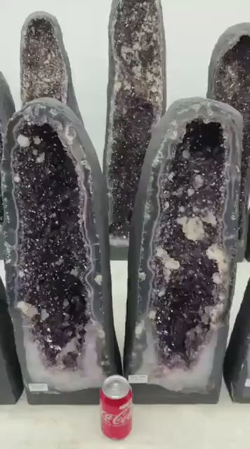 Høye Brazilian Amethyst Cathedral Par - Naturlig Big Ametyst Crystal Geoder, 73kg Totalvekt Par - 65x17cm pr. geode