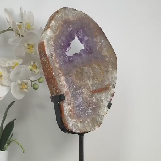 XXL Amethyst & Quartz Geode Slice Portal, Stand included - MWS2334, 34x20cm